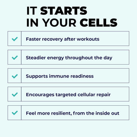 - Boosts natural cellular defense systems forenergy, recovery, and immune readiness