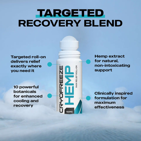CryoFreeze HEMP Pain Relief Roll-On is a topical cooling cream that comes in a hands-free roll-on for treating targeted areas of pain and stiffness. Regular strength contains 150 mg of hemp CBD per bottle and extra strength contains 500 mg of hemp CBD.